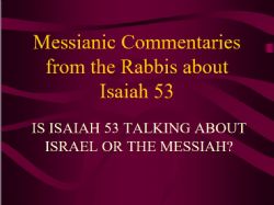 Is Isaiah 53 talking about Israel or the Messiah? If you read these Rabbinic ancient commentaries, there is no question, it is about the Messiah.